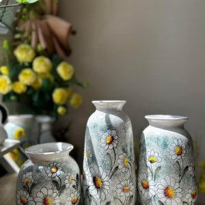 Bình hoa vẽ tay hoa cúc trắng 3cái/set 14- 20- 23cm