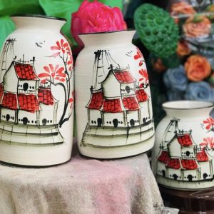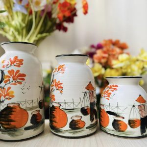 Bình hoa vẽ tay cô gánh 3cai/set 14- 20- 23cm