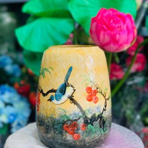 Bình hoa họa tiết chim đậu 22cm