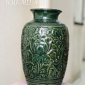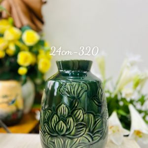 Bình xanh khắc hoa sen 24cm