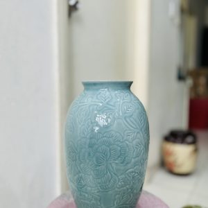 Bình xanh khắc họa cao 20cm