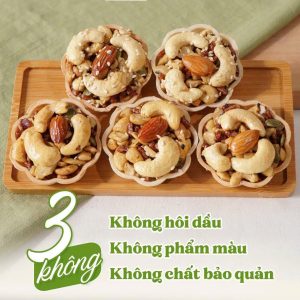 THÀNH PHẦN: Hạt điều, hạt bí xanh, gạo lứt, hạnh nhân, mè đen, đế bánh, mạch nha.