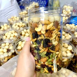 Trail Mix hạt và trái cây khô vị mật ong 500g : mắc ca, hạnh nhân, óc chó vàng, óc chó đỏ, điều, bí xanh, hướng dương, nho khô, nam việt quất
